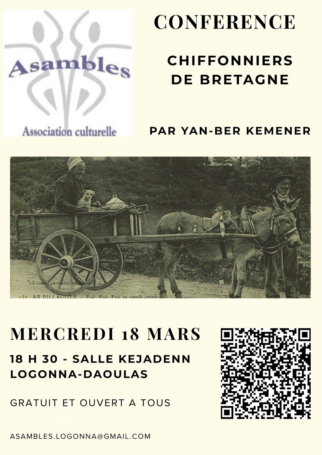 Yan-Bêr Kemener nous parlera de ce commerce de la récupération qui était l’apanage des habitants des monts d’Arrée, paysans de Botmeur, Brennilis, La Feuillée, Berrien et Loqueffret. Ils complétaient leurs revenus en devenant chiffonniers ambulants en dehors des périodes de travaux des champs.